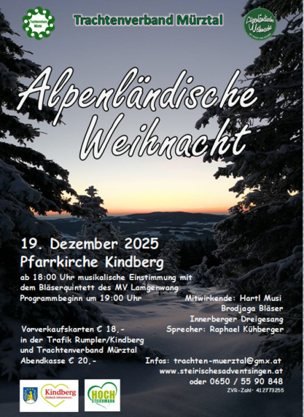 Vorverkaufskarten sind erhältlich in der Trafik Rumpler in Kindberg und beim Trachtenverband Mürztal.